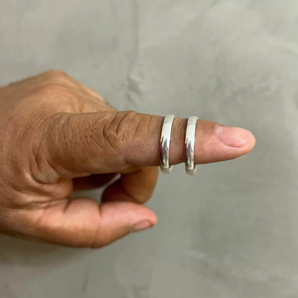 O par de aliança de prata 950 consiste na espessura de 3mm, anatômica na parte externa e inteiramente lisa.